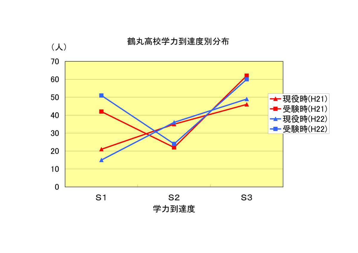 現役時点の学力到達度別分布は、S1大学15人(21人) S2大学36人(35人)、S3大学49人(46人)となります。( )は、平成21年度)