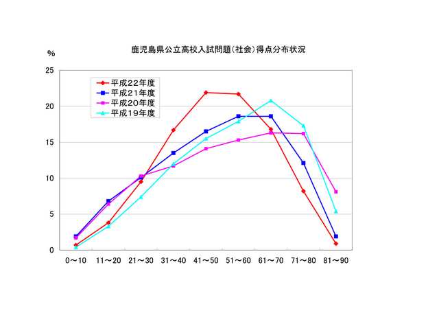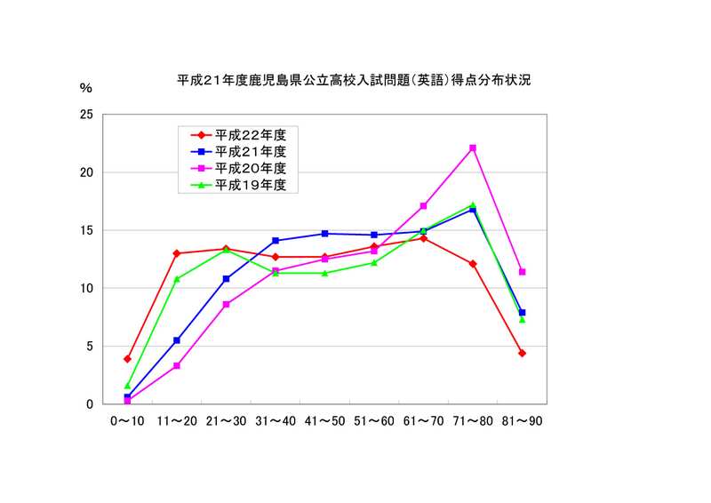 ③このため、平成21年度は入試問題を難化させ、平均点を下げることによって、71点以上の得点者を減少させ、学力の識別を向上させようとしたものと想定される。