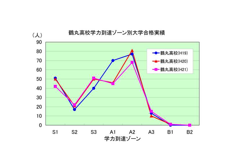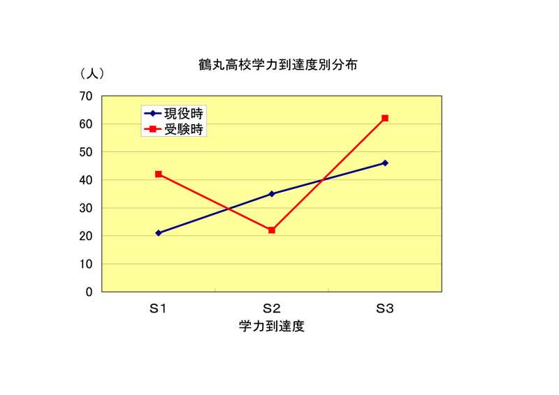 鶴丸高校の大学合格実績では、S1がS2より多くなっているが、平成21年度は鹿児島大学医学部16人(偏差値76)とS1の底辺層でS2上位層に近い層も多いと考えられます。