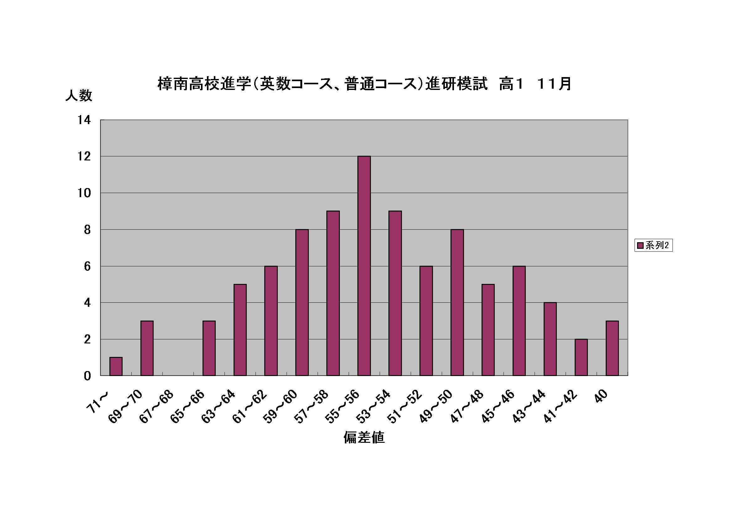 | 樟南高校英数コース | 11月 | 140.5 | 48.6 | 42.3 | 49.6 | 56.1 | 55.6 | 55.7 | 54.6 | |